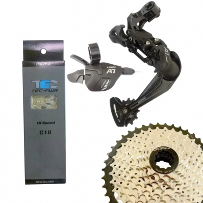 kit Transmissão de 10 velocidades , composto por : 1 - Câmbio Traseiro A7 Ltwoo SGS 10v ( CAGE LONGO ) ============================================================================== Compátivel K7 até 50 Dentes Passador Traseiro Ltwoo Marca: Ltwoo ================================================================================= Corrente Tec C10 Velocidades Index Marca: TEC PWR ================================================================================= Cassete Tsw Xtime 10v 11-42 Prata Preto Padrao Shimano Bike Cassete TSW XTIME RDS 10v 11-42D.