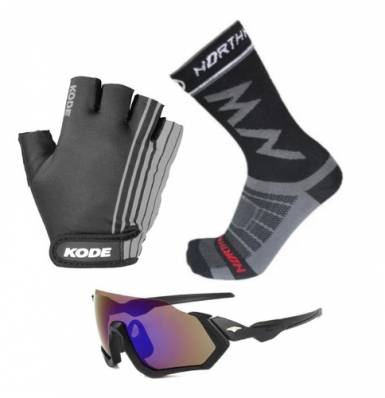 Luva Ciclismo Kode Rider Óculos Meia Mtb Speed Bike Cinza